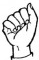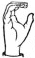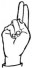 На ћирилици написано АЛЕКСАНДРА ПЕЛАГИЋ састоји се из 17 слова [?]. Исписано ћириличном једноручном азбуком за глувонеме: